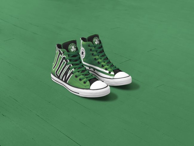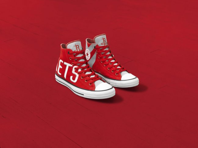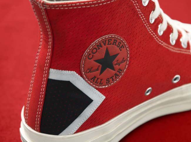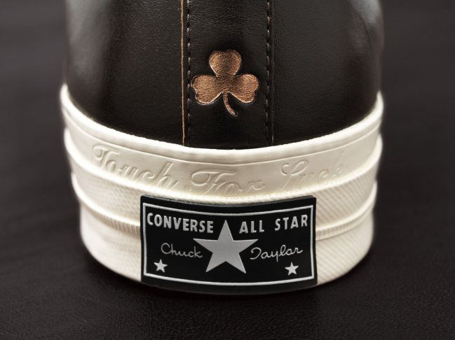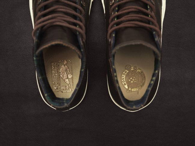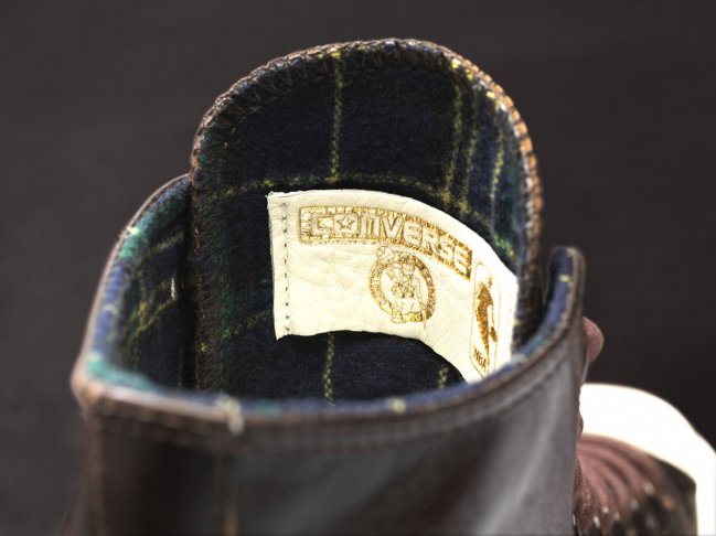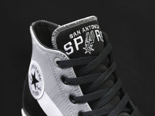 每双球鞋均采用原版 NBA 球衣作为鞋面材质并用软皮革衬里,附有限量版编号标签。同时,该系列皮革内衬与鞋舌内分别饰有独特的 NBA 压花 logo 与 Converse 和 NBA 品牌织标。