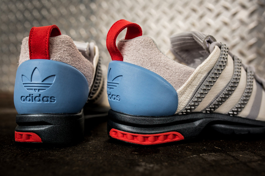 两双鞋都以经典红 / 白 / 蓝三色为主调,大面积的 Climacool 网料材质覆盖鞋身,结合光面皮革与优质麂皮,再辅以绑带和 3M 反光等细节点缀,看上去充满了科幻视觉冲击感!