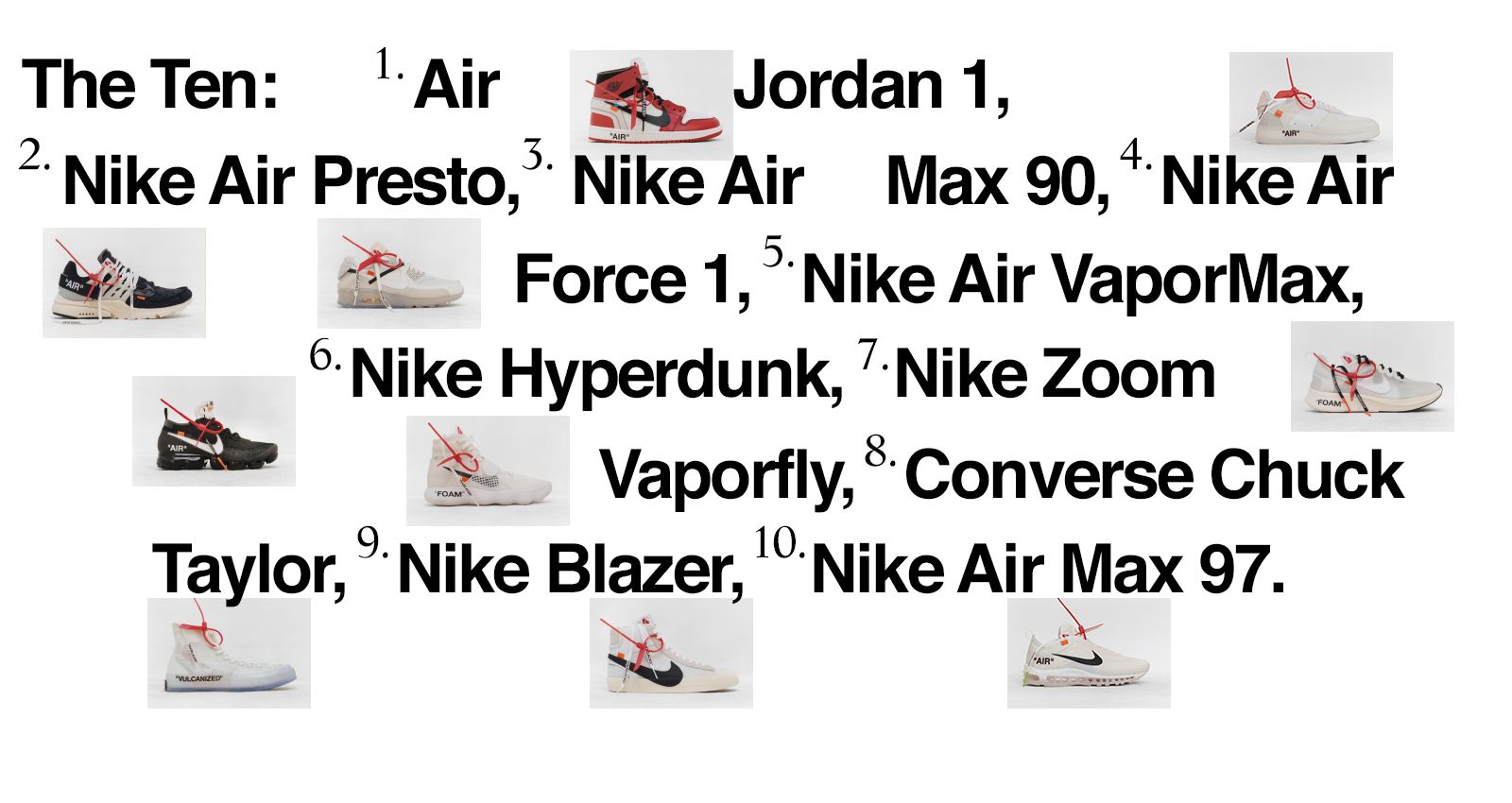 Nike 与 OFF-WHITE 主理人 Virgil Abloh 合作打造的 The Ten 系列自曝光以来备受关注。