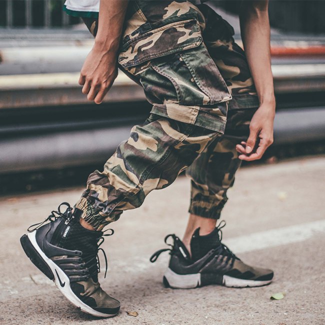 束脚设计搭配迷彩条纹拼接,可谓画龙点睛之笔!