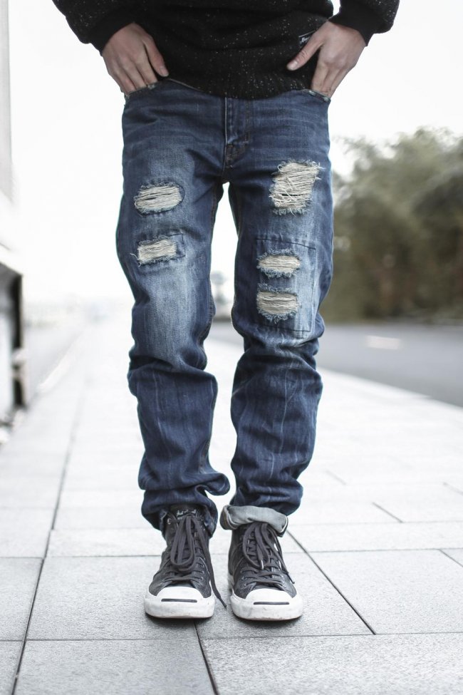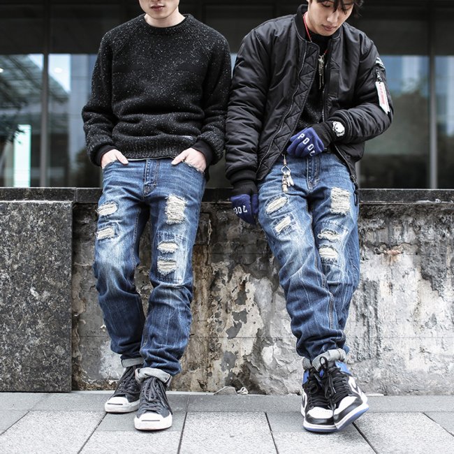 经典水洗风格与破洞工艺,再加赤耳细节点缀整体!