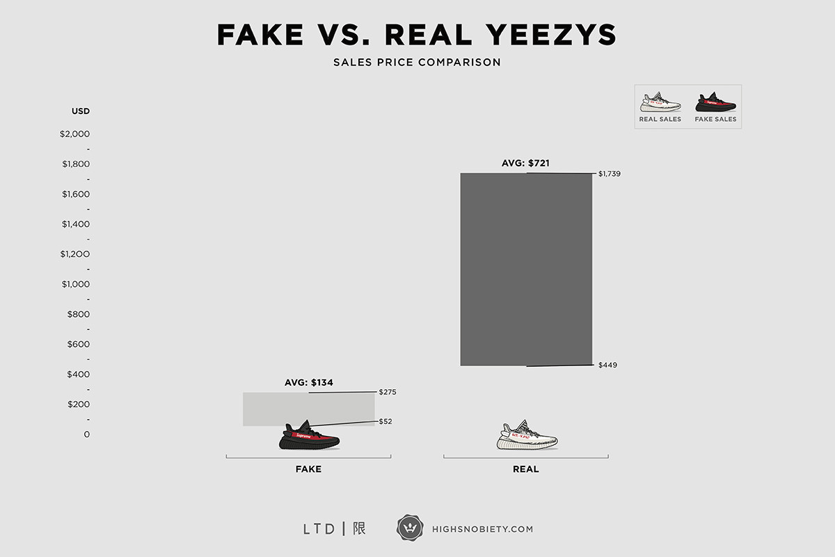 潮流媒体 Highsnobiety 联合 LTD. 对阿里巴巴旗下淘宝网的 Yeezy 售卖情况进行了分析,得出的最后结论是,七双 Yeezy 里,就有六双是假的!