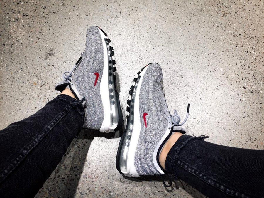 在 OG 银子弹装扮的基础上,这款女生专属将多达 55000 颗的 Swarovski 水晶巧妙的镶嵌于鞋面条纹之中,成为真正意义上的 “水晶鞋”,初始定价也顺理成章的高达 ¥ 2699 元。