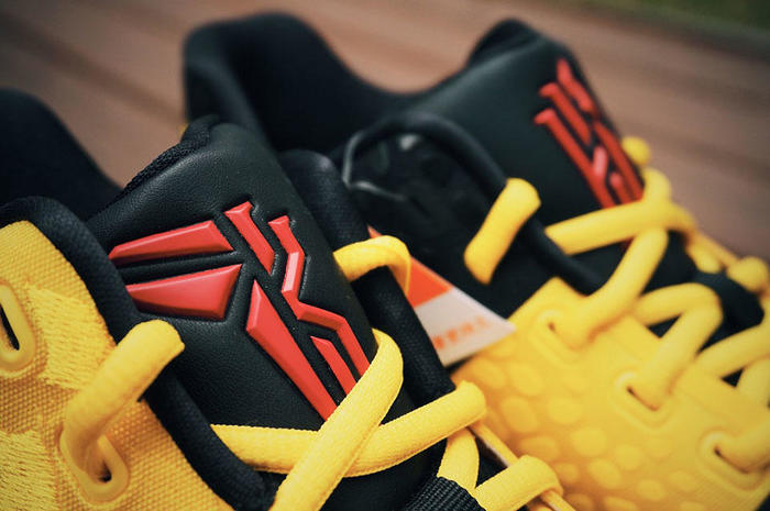 本次以欧文最爱的 Kobe 5 "Bruce Lee" 元素融入 Kyrie 3 鞋型之中,不仅采用了相同的黑黄配色方案,更还原了鞋身醒目的四道血痕细节。