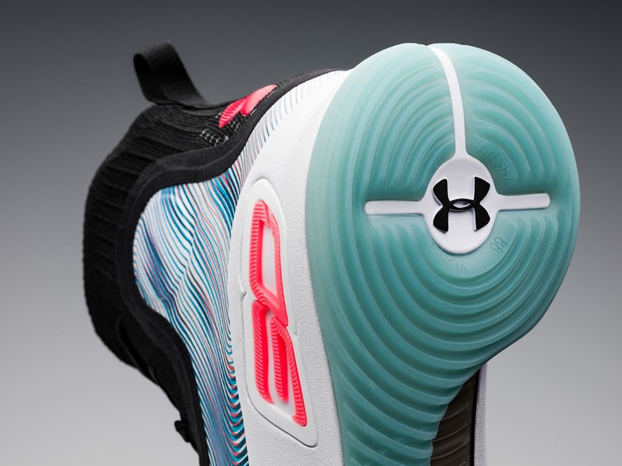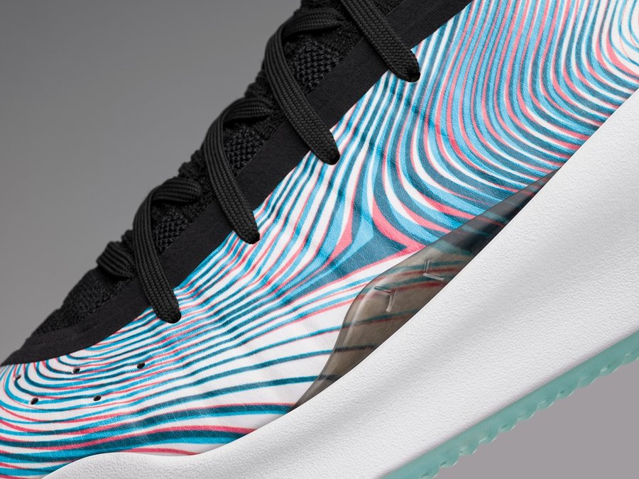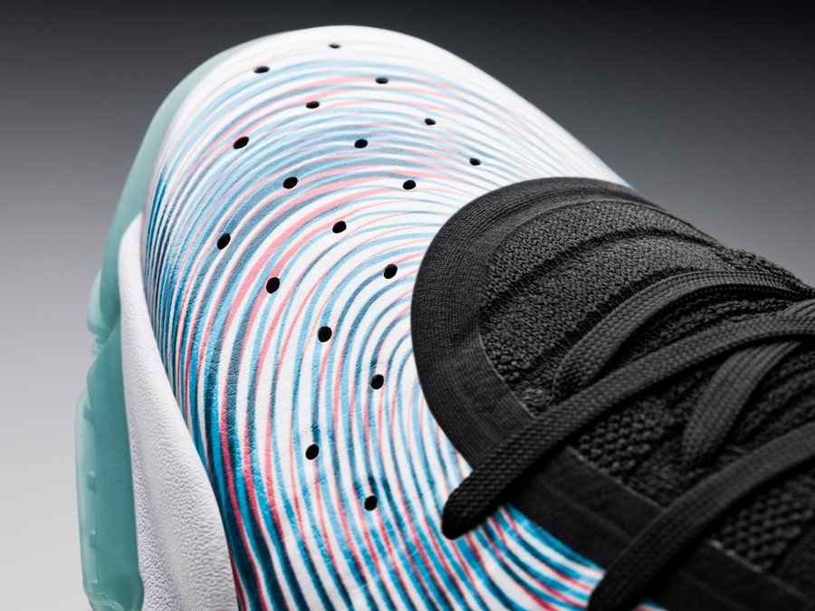 以萌神变幻莫测、让人眩晕的控球动作和灵活防守为灵感,鞋面彩色波纹富于变幻,层次丰富,完美契合库里美如画的场上表现。