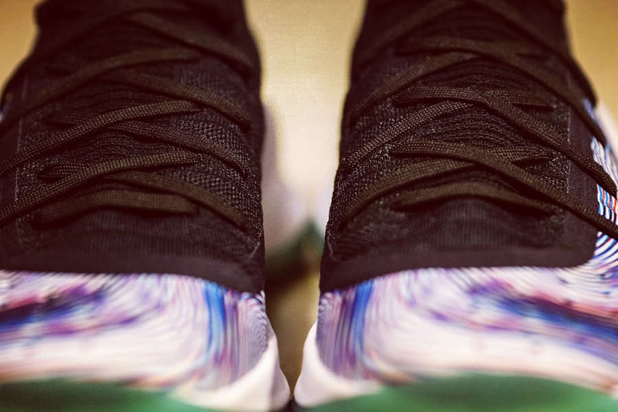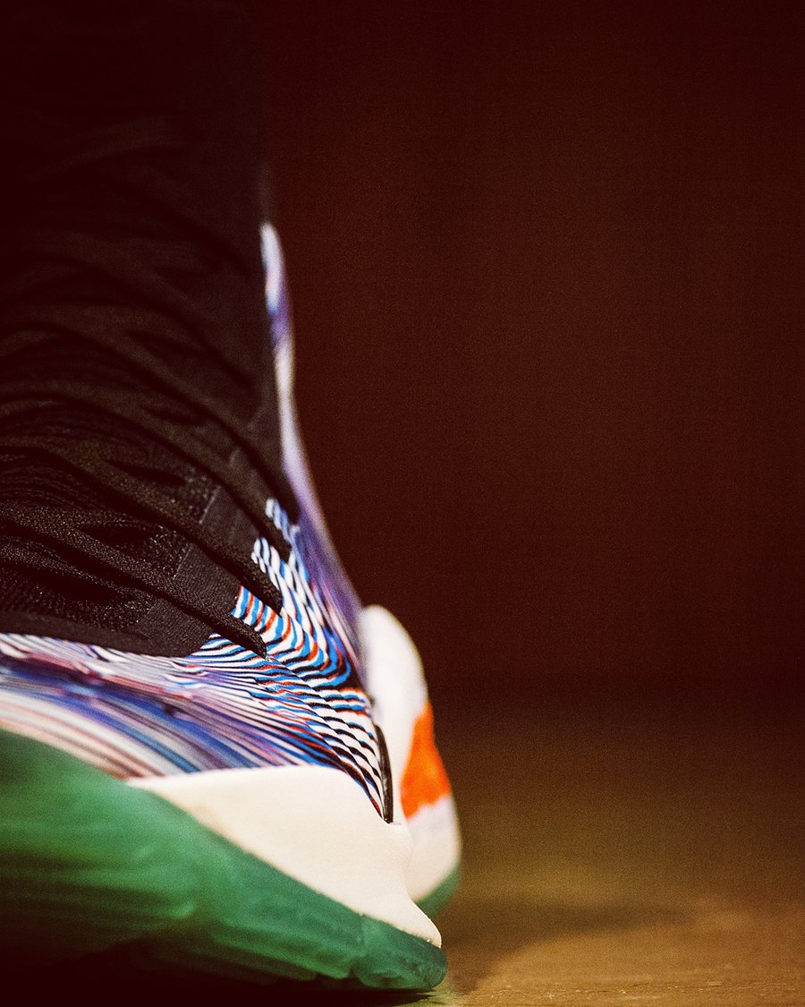 Curry 4 拿在手里的第一刻,除了中国别注独有的幻彩外观让人眼前一亮,得益于织物鞋身的加持,超轻的重量同样让人惊讶。