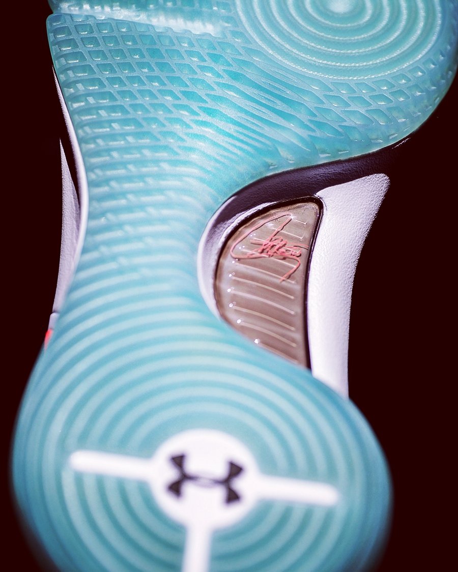 座右铭 I CAN DO ALL THINGS 出现在后跟内侧,依然是雷打不动的保留细节!外底橡胶粗壮厚实,对于广大室外党来说格外亲民。越来越多实战鞋都是一个急停至少 5 块,这次 Curry 4 的耐磨表现值得期待。
