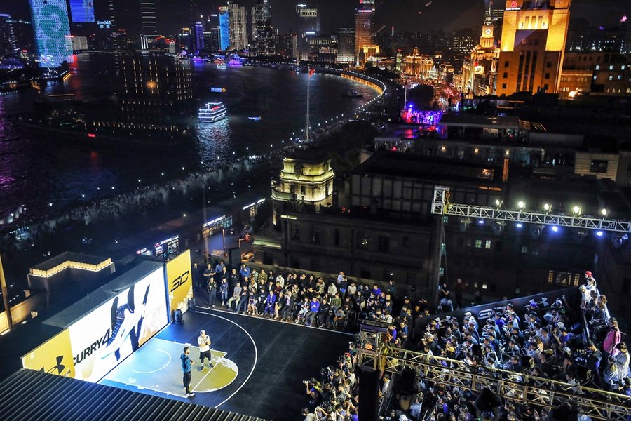 本次发布会选址 UA 颇为讲究,在外滩著名的半岛酒店 11 层露台,上海最美的夜景尽收眼底,与发布会布置的霓虹交错,完美契合 Curry 4 “More Magic” 的幻彩主题。