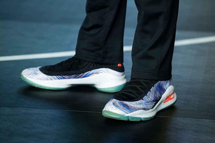 大家关心的上脚如何,带来库里及现场粉丝的实着表现,黑色鞋领与斑马纹理的幻彩鞋面,呈现出活力与沉稳兼顾,就算日常通勤穿着也为整体造型增色不少!