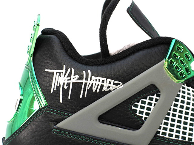 目前一双 Tinker Hatfield 亲签的 Air Jordan 4 “Oregon Ducks” 在一家日本网站上售卖,相比于俄勒冈别注的 Air Jordan 3,4 代鞋型的存世量本来就要少一些,而黑色皮革鞋身上的白色签名,也颇具艺术观感!