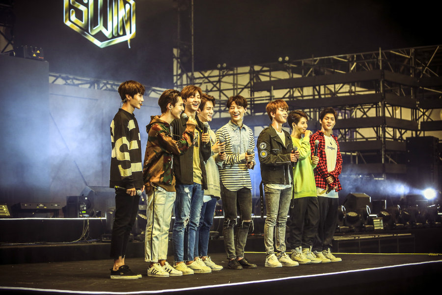 7日,人气偶像团体 SWIN 在舞台区表演完后,