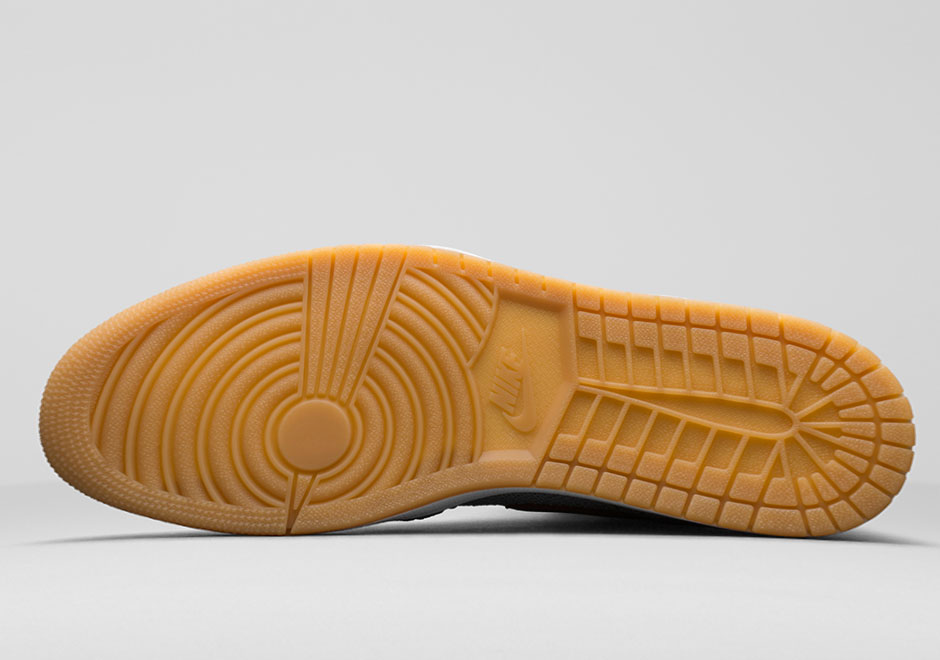 鞋款编织鞋面以相对低调的浅灰色为主调,鞋身 Swoosh Logo,鞋舌和鞋帮飞翼标志等细节都以小麦色的麂皮材质打造,内衬及鞋垫则使用皮革材质,瞬间提升了整双鞋的质感,最后搭载白色中底和黄色生胶外底,整体搭配恰到好处。