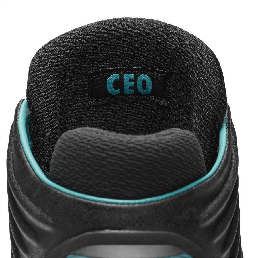 同样以乔帮主黄蜂 CEO 为主题,黑色鞋身以青色和紫色细节点缀,耐脏又百搭。