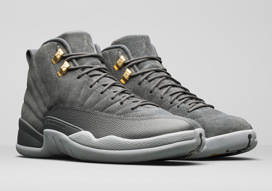 除了酒红配色外,Air Jordan 12 还将带来金扣灰麂皮版本,延续本次的奢华呈现。