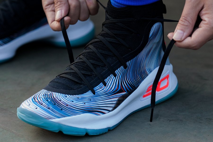 在年初总决赛闪亮登场,Under Armour Curry 4 凭借超高的颜值,全新的织物鞋身,与此前几代大相径庭的前卫设计,瞬间俘获广大球迷的心!