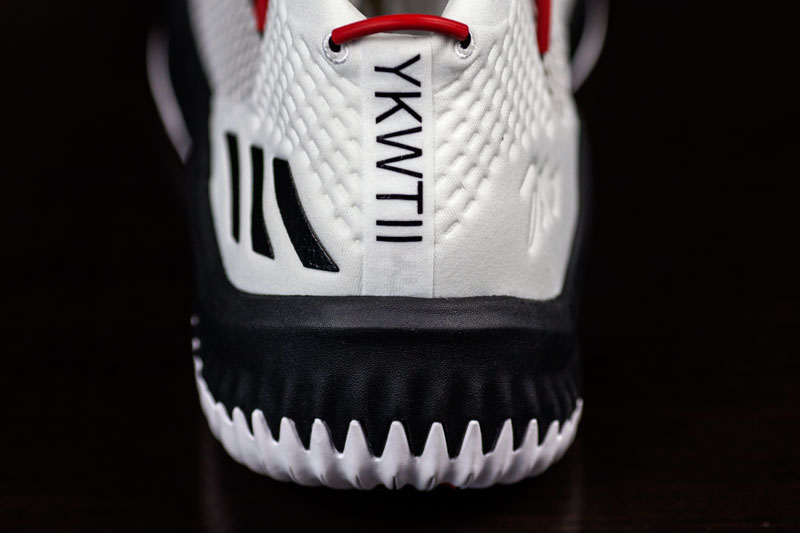后跟出印有的黑色 “YKWTII” 字样,被解读为利拉德本人在球场上常说的一句话 “You know what time it is”,而红色提扣的设计则大大提高了球鞋穿脱的便利。