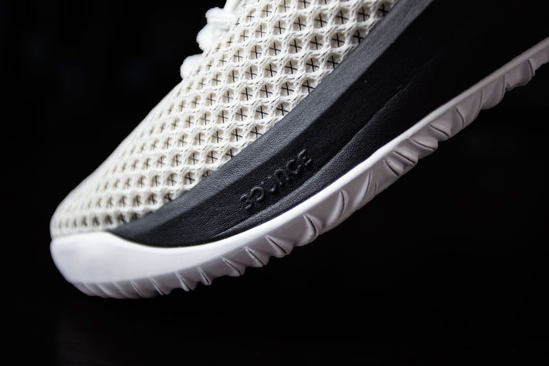 把球鞋拿在手中的一瞬间,最先吸引小编的还是鞋面的设计,粗看好像是很普遍的工程网面设计,但仔细观察却发现鞋面竟然是双层的设计。