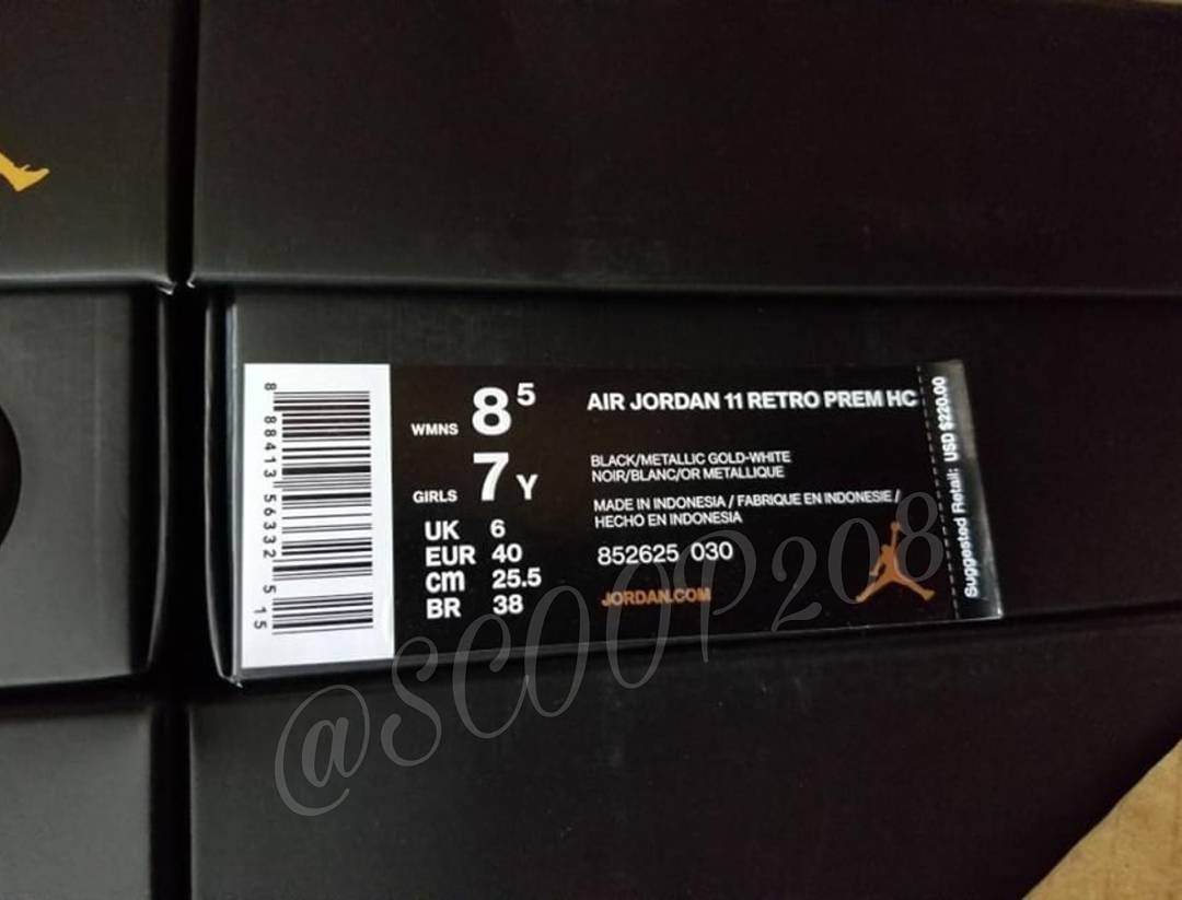 继早前在官方宣传图片率先亮相后,此番关于这款 Air Jordan 11 的消息又有了最新进展!经由 @scoop208 再度爆料,带来更为清晰的实物图片及鞋盒信息!