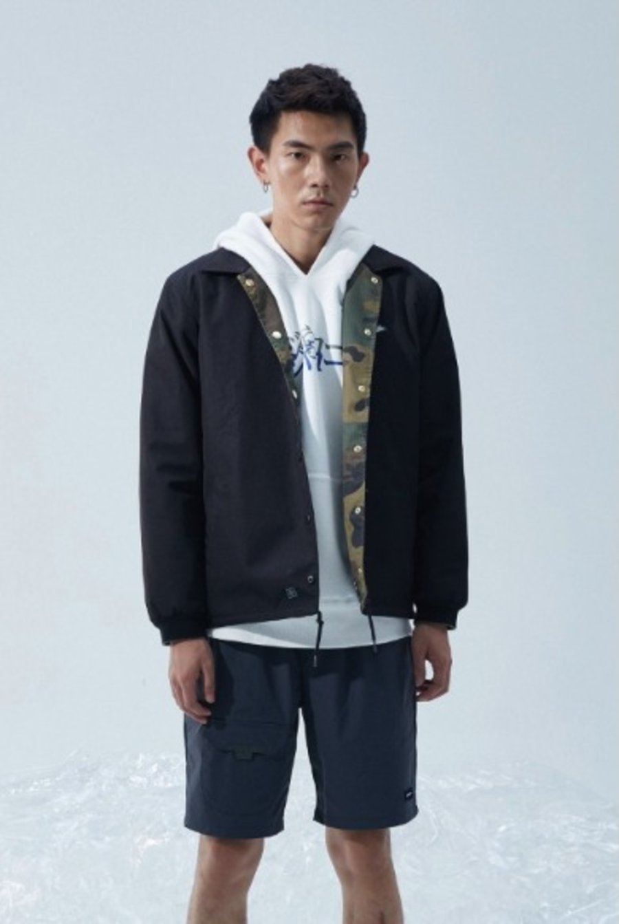 纯色教练夹克搭配衬衫还是帽衫都是不错的选择!