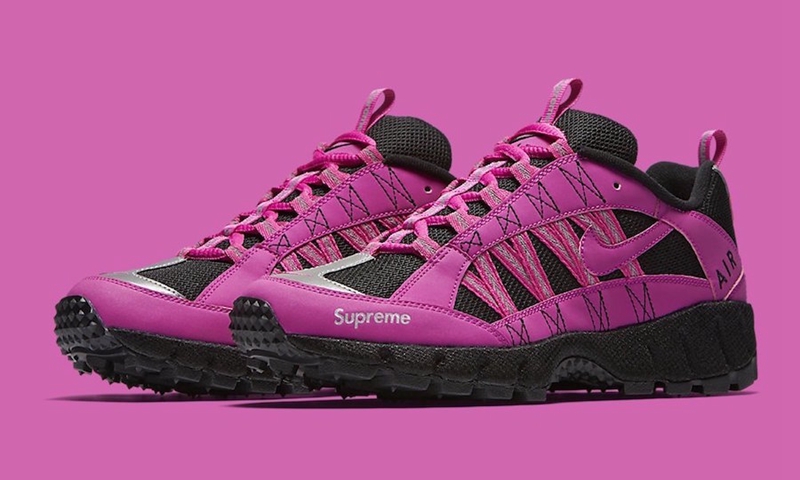 本次合作以诞生于 1998 年的复古鞋款 Nike Air Humara 为蓝本,分别带来粉色、蓝色、荧光绿及纯黑四款配色,鞋舌、鞋头与后跟处均印有 Supreme 字样彰显身份,辅以 3M 反光设计点缀细节。这份浓郁的复古风韵,仿佛让人瞬间穿越回到了 90 年代!
