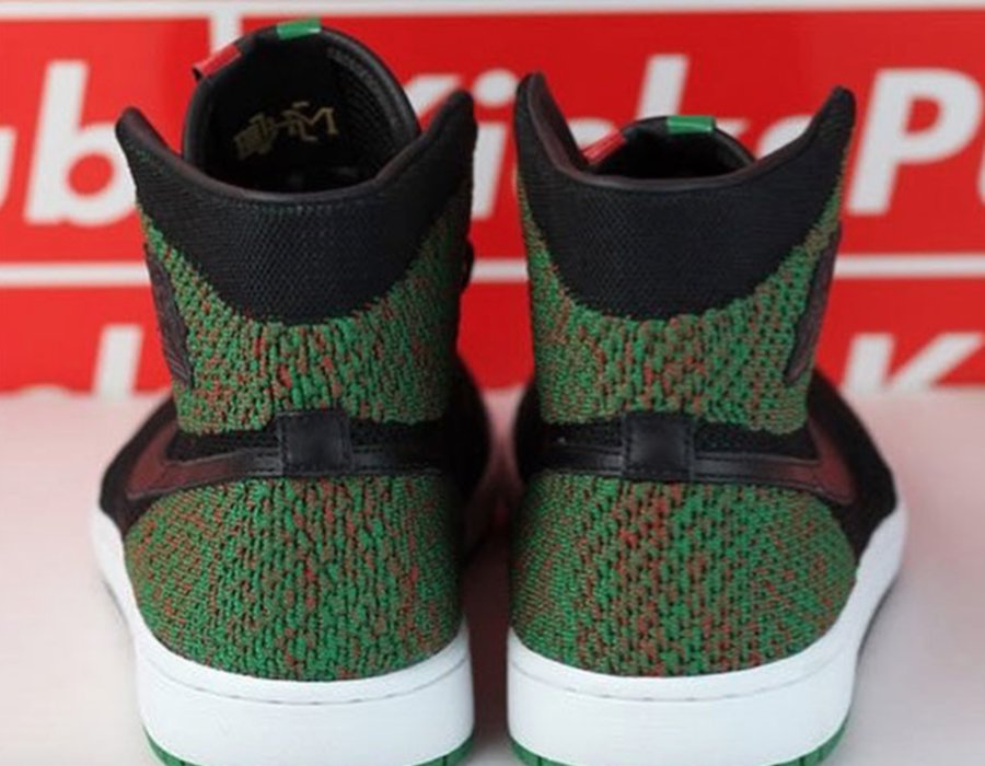 其中 Air Jordan 1 Flyknit “BHM” 在延续元年 OG 造型的基础上,采用更为轻盈的 Flyknit 编织材质制作鞋面,以红黑绿三色装扮构成,鞋舌内侧印有 “BHM” 字样表明身份。最大的亮点在于鞋底处,同样采用了分段式的三种色调呈现,吸睛指数极高!