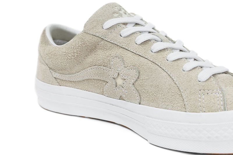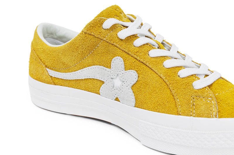 将 Tyler, The Creator 独特的花朵元素融入经典的 Converse One Star 麂皮鞋身,带来三款缤纷配色。在外底和鞋舌同样有 GOLF le FLEUR* 的印花点缀,缓震性出众的 Ortholite 鞋垫注入其中,带来更为舒适的穿着感受。
