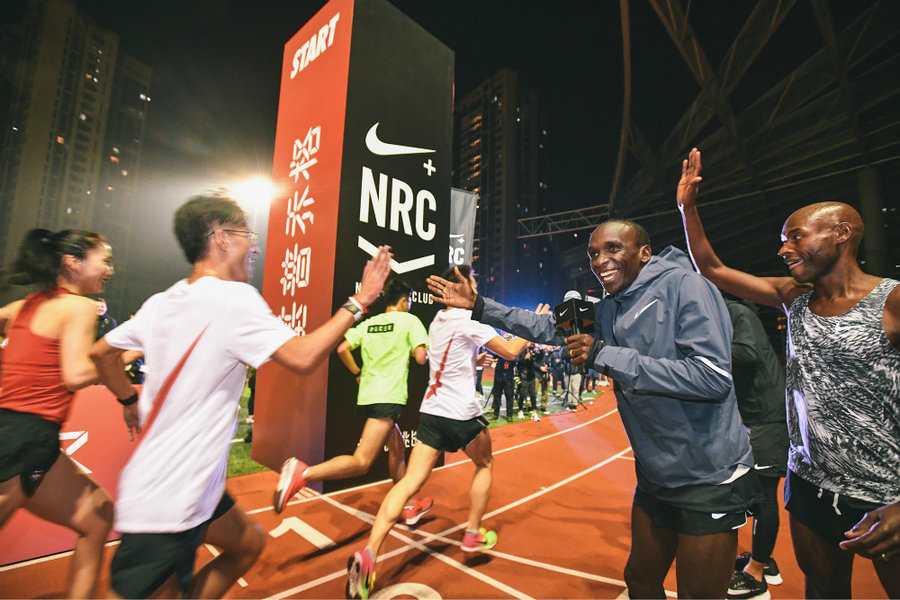 10 月 21 日,基普乔格现身耐克品牌体验店淮海店,分享突破挑战精神。