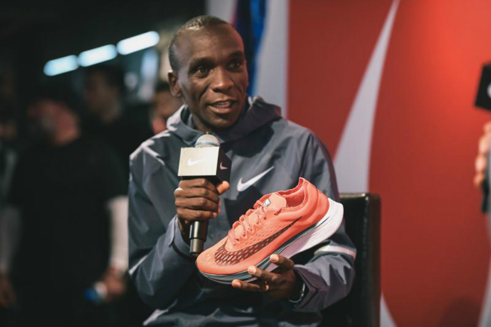 在上海站期间,基普乔格透露,助力他在 Breaking2 挑战和柏林马拉松当中取得了突破性成绩的 Nike Zoom Vaporfly Elite 跑鞋是为他量身打造的,