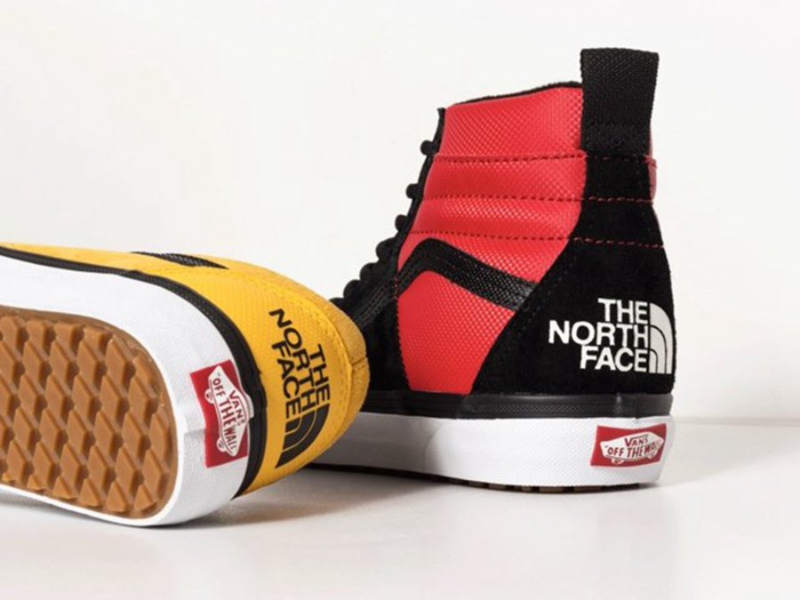 除此之外,The North Face 还将携手滑板品牌 Vans,选用 SK8-Hi 及 Old-Skool 两款经典鞋型为蓝本,分别以红黄色双色示人,后跟处印有 The North Face 品牌 Logo 点明身份,辨识度极高!