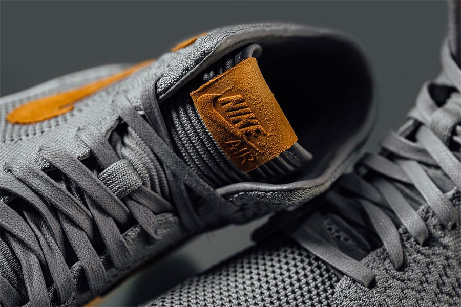 灰色的编织鞋身,以金棕色的皮革打造 Swoosh 和细节标签,清爽百搭又有时尚元素的点缀,更易于上脚穿搭。