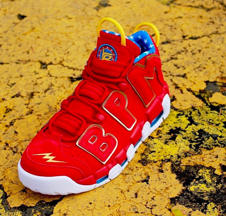 眼前这款红色装扮的 Nike Air More Uptempo Doernbecher 以神奇女侠作为灵感来源,作为一位漫画迷,小设计师格外的喜爱这一系列漫画,同时也将自己的主任医师看做是同样的英雄形象。