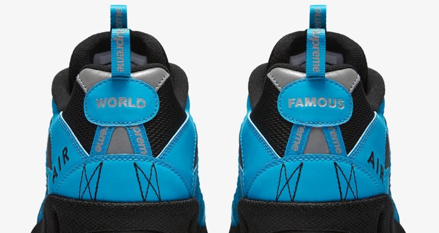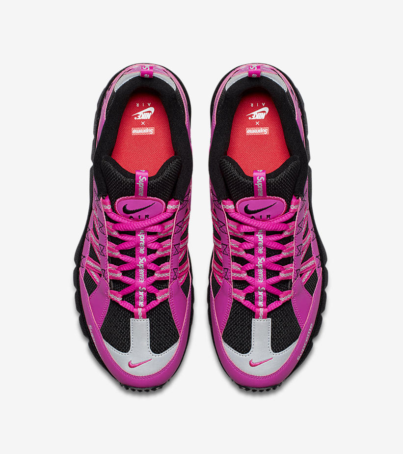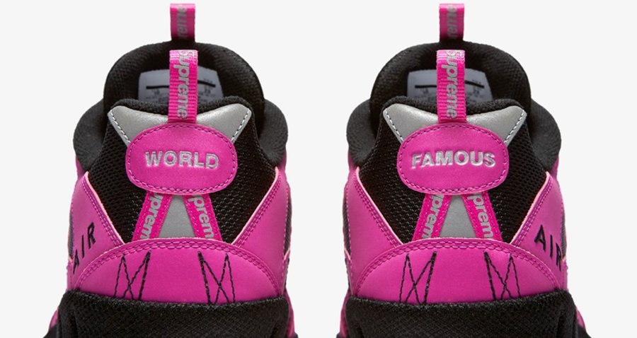 系列包含粉色、湖蓝、荧光绿及纯黑四款配色,鞋舌、鞋头与后跟处均印有 Supreme 字样彰显身份,辅以 3M 反光设计点缀细节,简直是浓浓的复古风!虽然不少人都说丑,但这样级别的联名还是会成为疯抢的对象!