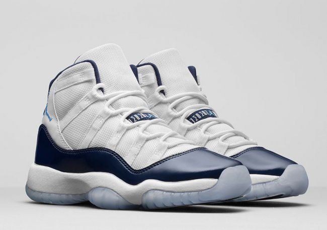采用亮眼的海军蓝漆皮搭配白色尼龙鞋面,后跟点缀北卡蓝色 Jumpman Logo,给人一种熟悉但却耳目一新的视觉感受!灵感却来源于乔丹大学母校训练裤的配色设计,乔老爷在比赛时,一直将母校的训练短裤穿在正式比赛球裤下面,用以致敬母校。