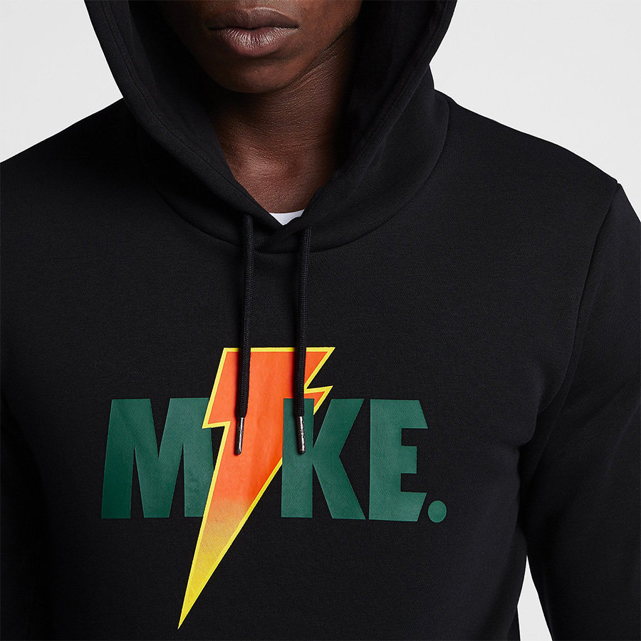 包含帽衫、教练夹克在内,除了橙色和绿色彰显了佳得乐的标志性元素,闪电 LOGO 也是辨识度极高的夺目装饰。长袖卫衣还呈现了 Jumpman Logo 的串标样式,格外的特别!