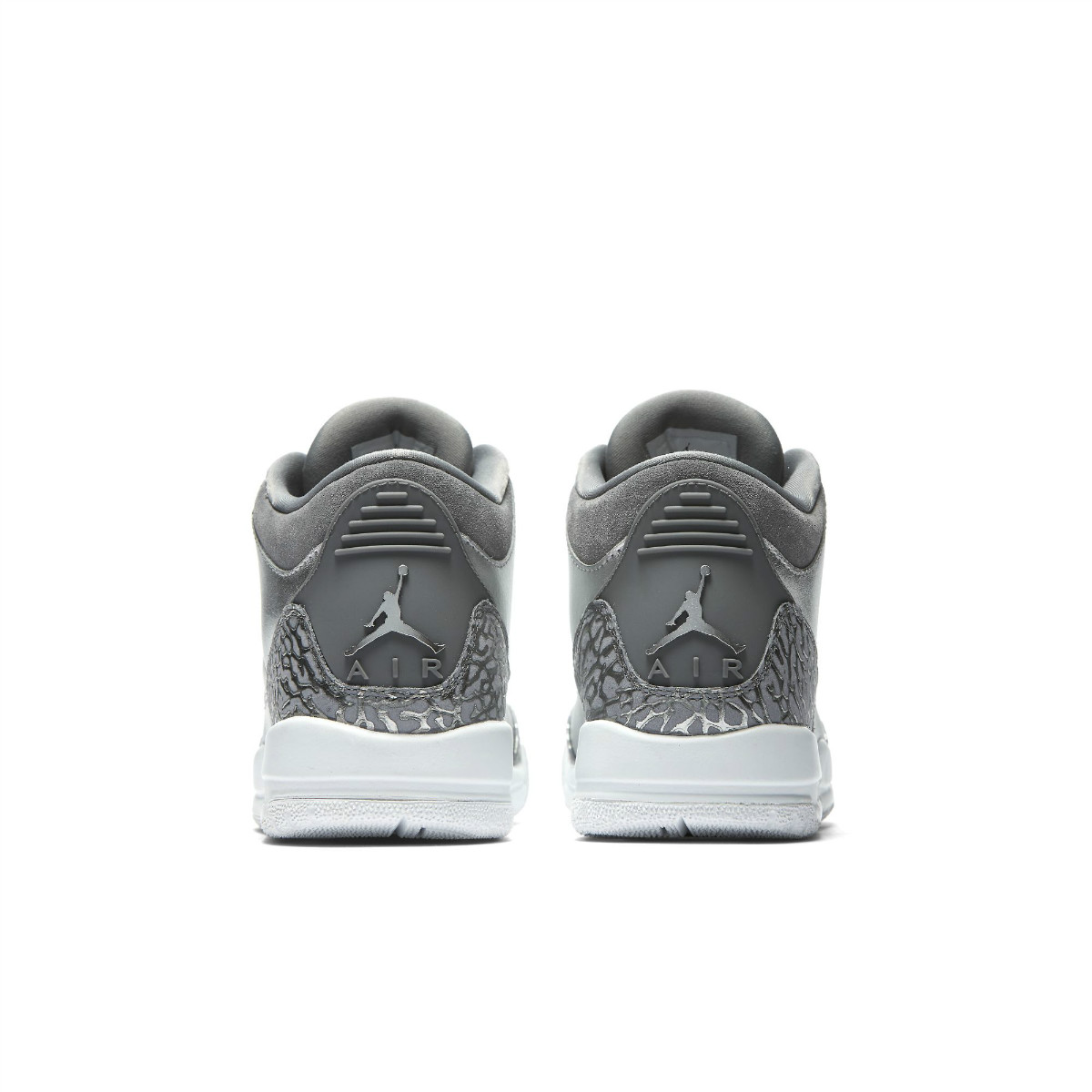 这双鞋也是 Air Jordan 3 首次使用液态银色鞋面,搭配深灰色爆裂纹、鞋舌和内衬等细节,同时鞋舌还是以麂皮材质打造,做工十分精细,整体质感也极为不错。