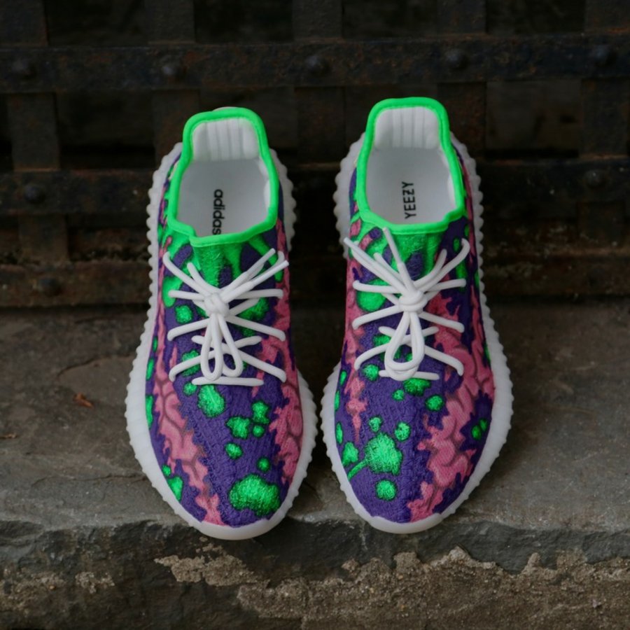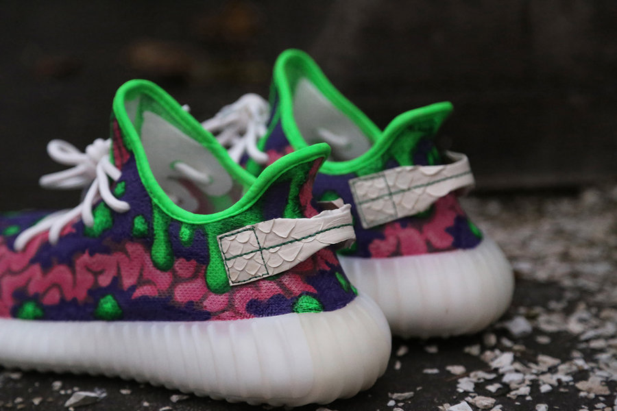 除了奇装异服搞怪妆容,一双万圣节主题球鞋自然是 Sneakerhead 用来彰显个性的绝佳方式! 来自纽约的知名球鞋定制师 Ceeze 以行尸走肉为灵感,带来眼前这双 adidas Yeezy Boost 350 V2 卡通僵尸。 活泼的配色配以卡通画风呈现,一改僵尸题材固有的血腥印象,后跟提环辅以蟒纹点缀,不仅精致独特,搞怪风格更让过目不忘。