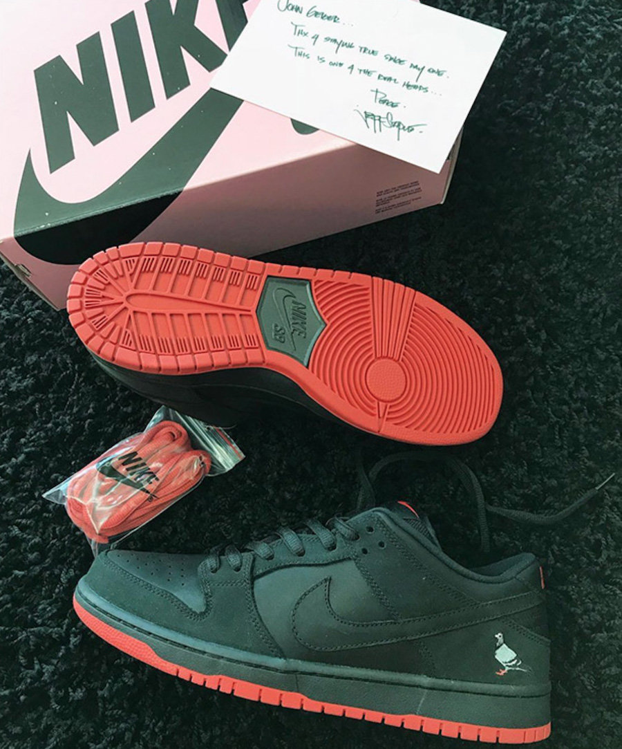 这款 Nike SB Dunk Low TRD QS “Pigeon” 绝对是鸽子爱好者的必入款式,包括 Ishod Wair 和 Eric Koston 在内的 Nike 签约滑手都已经网晒了这款黑鸽子。