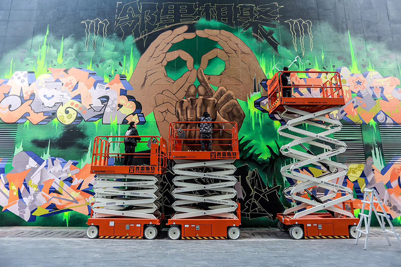 由来自全世界涂的鸦艺术家现场创作近 800 米涂鸦艺术墙。