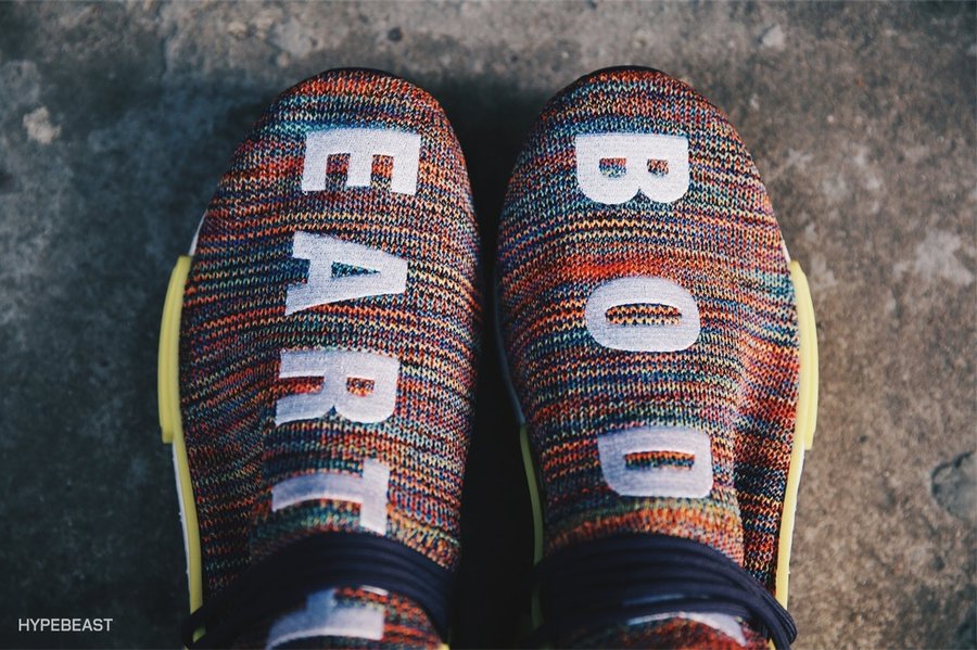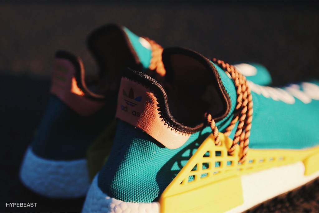 菲董与 adidas 全新联名系列 Pharrell x adidas Original HU NMD Trail 包含四款配色,四双鞋的配色方案同样将色彩发挥到极致,赋予鞋款强大的吸引力。