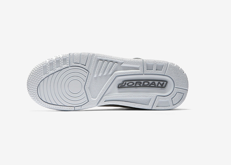该 Air Jordan 3 首次使用液态银色鞋面,搭配深灰色爆裂纹、鞋舌和内衬等细节,同时鞋舌还是以麂皮材质打造,做工十分精细,整体质感也极为不错。