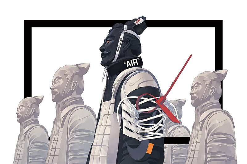 再现场你还能欣赏到同样出自于 UIDWORKS 工作室的知名插画师 AXJ 打造的一组超酷中国风限量鞋款主题插画。