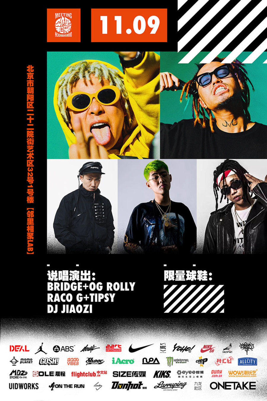 作为开幕日,特邀 GOSH MUSIC 成员 BRIDGE & OG ROLLY 及 GOODVIBES 成员 RACO G & TIPSY 来到北京现场,与我们的老朋友 DJ JIAOZI 在现场为消费者带来别开生面的球鞋发售体验。