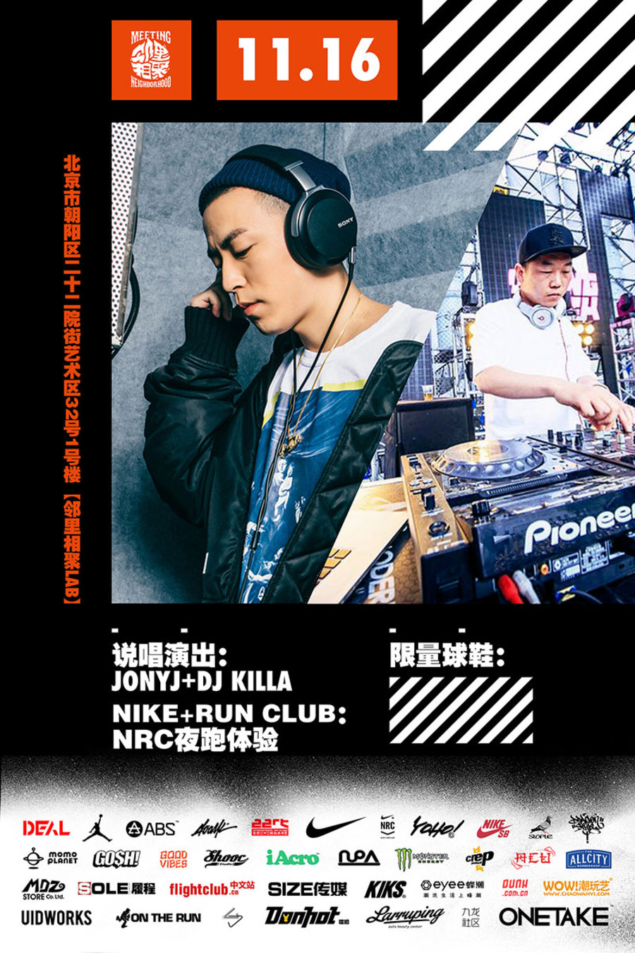 作为闭幕活动,特邀 SHOCC 成员 JONY J 及 DJ KILLA 亲临北京现场为消费者带来特别的演出,并参与神秘限量球鞋抽签发售,最终中签者将在专业的 NRC 工作人员指导下,完成一次超酷的夜跑体验。