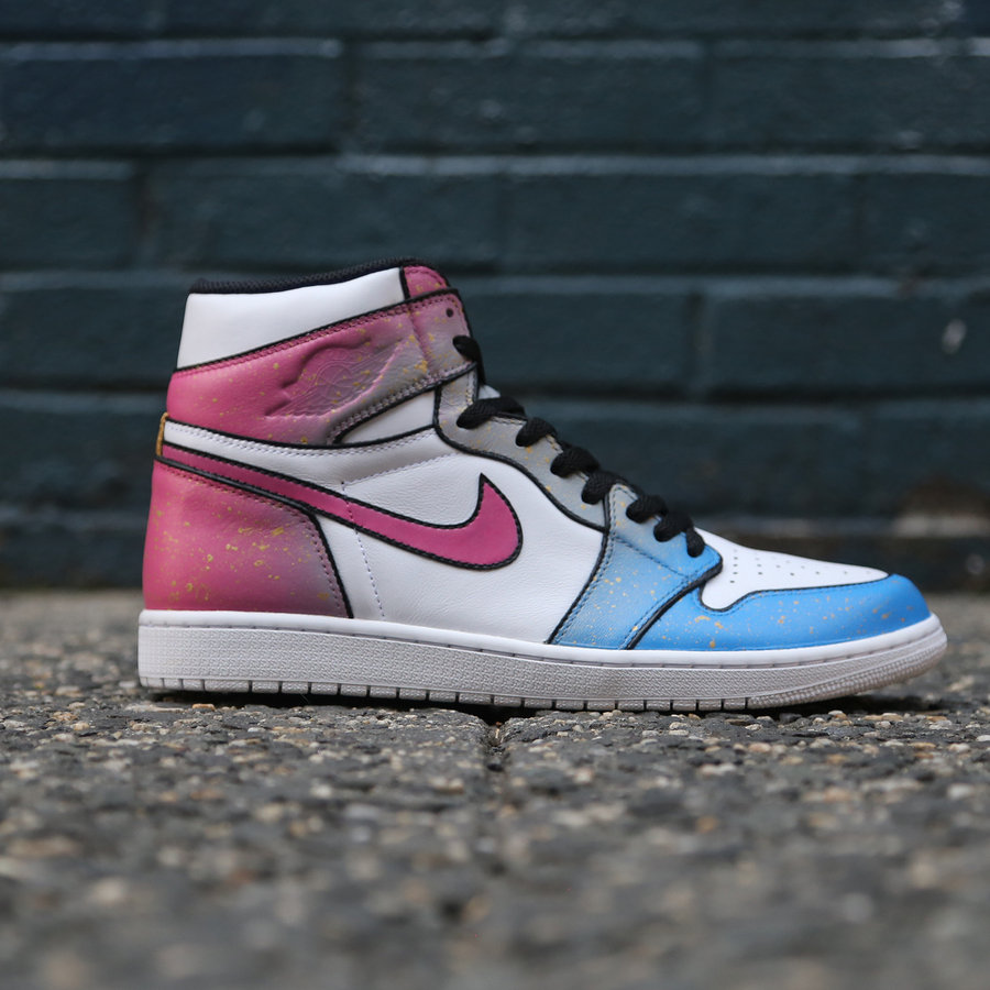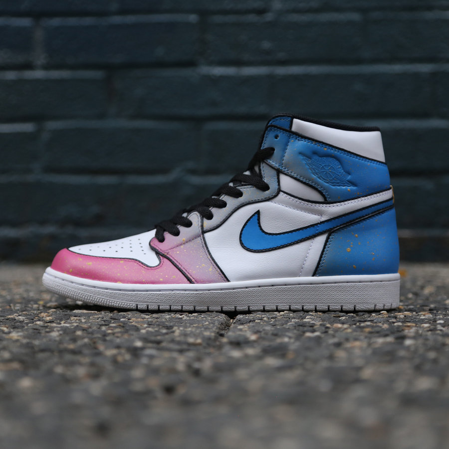 来自纽约的球鞋定制师 Ceeze 再添新作,继此前万圣节主题的 Yeezy 350 后,今次以神秘的炼金术为灵感,为纯白 Air Jordan 1 换装上清新亮眼的魔力装扮! 将蓝、粉渐变色彩置于鞋身之上,左右反转带来眼前一亮的鸳鸯效果。 细节之处辅以金色泼墨点缀,并以黑色粗线勾勒鞋身轮廓,营造更为丰富且立体的动人活力,吸睛指数极高!