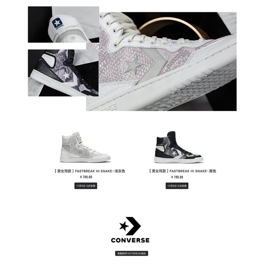 据悉多双 Fastbreak 主题鞋款,将于 11 月 9 日零点在 Converse 天猫官方旗舰店正式发售,感兴趣的朋友不妨提前加入购物车做好准备!