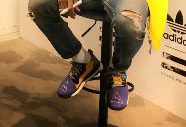 而当天的菲董还上脚了一双颇有趣味的鞋款,以 Energy Boost 为蓝本,色调和鞋头都是 Hu 系列风格。