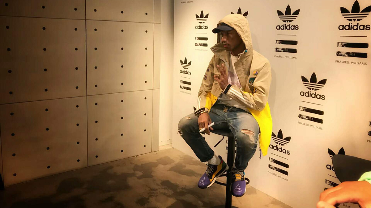 双 11 当天是 adidas Originals Hu NMD 全新配色的发售日,在上海南京西路的旗舰店铺,居然迎来了 Pharrell Williams 的突然降临!