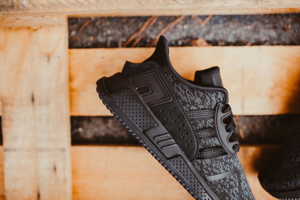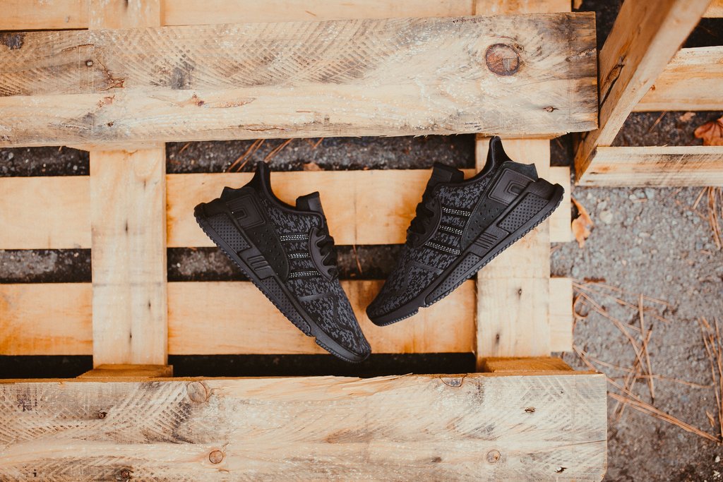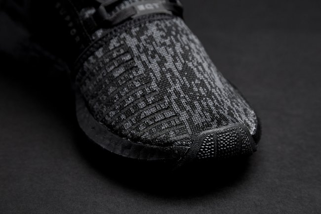 EQT Cushion ADV “Triple Black” 鞋面 Primeknit 编织材质中加入灰色数码迷彩点缀,其余全部细节都以黑色覆盖,黑魂气质浓郁,细节、质感、百搭是最大的特点!