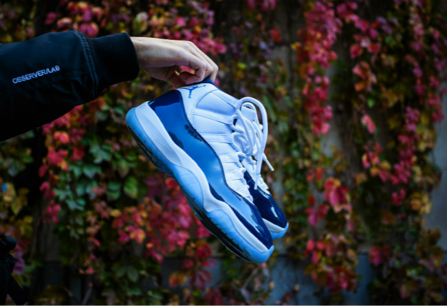 以 Jordan 在 1982 年帮助母校北卡大学夺得 NCAA 冠军为灵感,鞋面漆皮及后跟飞人 Logo 分别采用海军蓝搭配北卡蓝色呈现,既有意义又有颜值。许多当初没能入手 Concord 的朋友,如今纷纷毫不犹豫的将它入手。