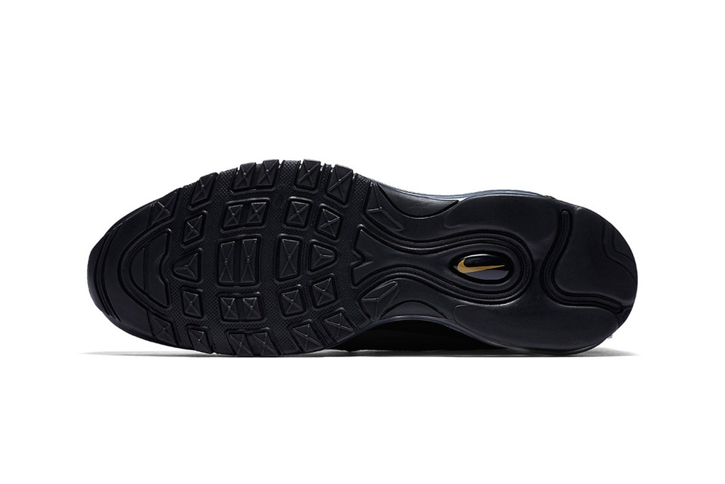Nike 在今年为 Air Max 97 系列推出的配色数不胜数,近日一双全新 Nike Air Max 97 “Triple Black” 即将迎来发售。 鞋款以纯黑色为主调,鞋面加入皮革材质提升整体质感,鞋身细节加入 3M 反光材质,在光照下显示出独特的金色光彩,与气垫中的黑色点缀完美呼应,形成一种独特的黑金魅力。 鞋款将于 11 月 24 日在 Nike SNKRS 上正式发售,发售价格为 $160 美金,感兴趣的朋友可以多加关注。